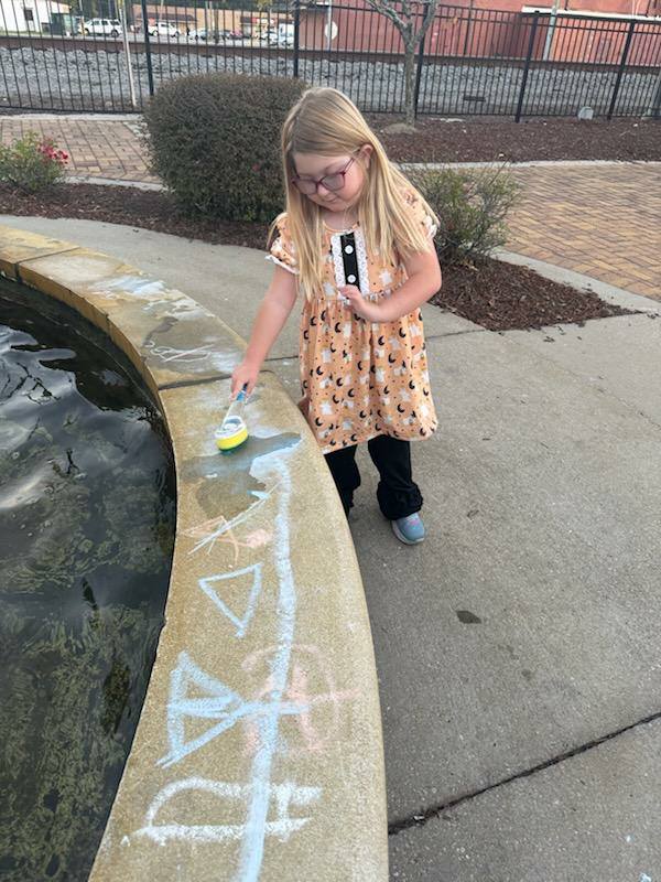 Scarlett, a young local resident, loves to visit the fountain to sit and have a picnic from time to time. On one of her recent visits, she noticed it could use a little sprucing up — and decided to take matters into her own hands.