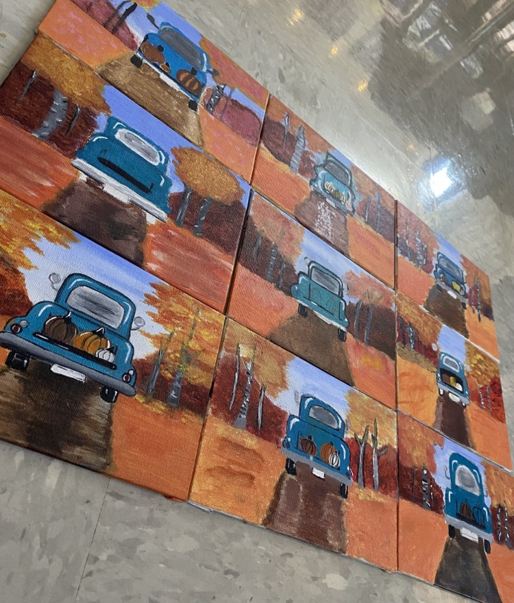 This week, Miss Rogers’ art students at Latta Middle School used acrylic paint on canvas to create fall-themed compositions.