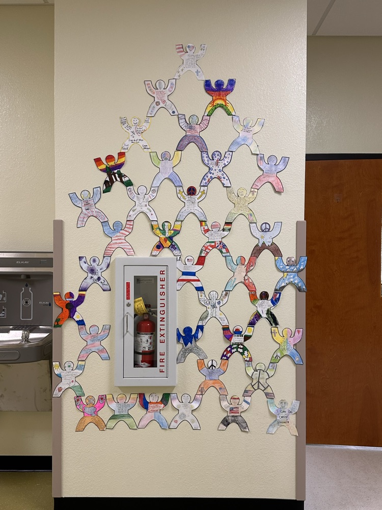 7th grade geography students at LMS created a Pyramid of Peace after studying World War I, World War II, and the Cold War, reflecting on the impact of global conflict and honoring veterans while considering the importance of peace in today’s world. (Source: Latta Schools)