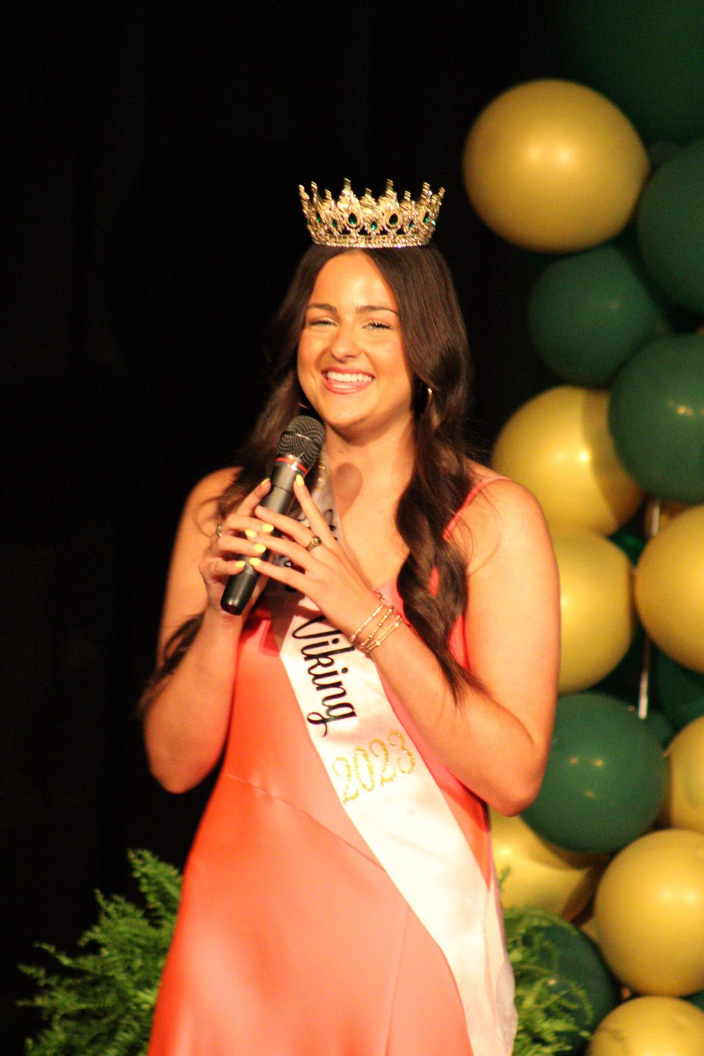 Saturday, May 10th at 5:00 p.m., Latta High School held their annual Miss Viking Pageant in the Ellis Performing Arts Center. Contestants competed in three categories; Interview, “YOU-nique” creative wear category, and an evening gown category. Entertainment was provided by Miss Viking 2023, Janie Nolan, and the reigning Miss Viking 2024, Katelyn Johnson. Both young women also helped MC the pageant along with Miss Viking 2022, Sophie Haselden and the pageant director, Jodie Peele (Branham).