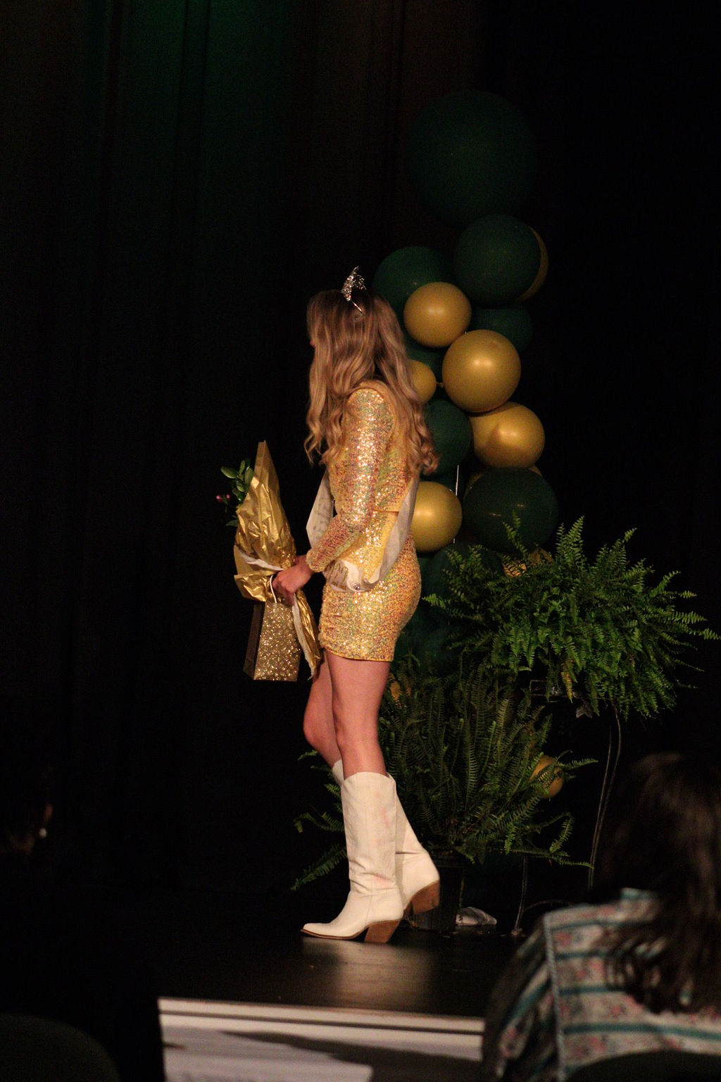 The contestants were as follows: Freshmen Hannah Lauren Berry and Rylan Hope Hunt; Sophomores Avery Lea Kirby, Kyrian Sage Oxendine, and Ahyliah Shantasia Smiling; Junior Kate Elizabeth Gasque; Seniors Demery Maddox Berry, Jennifer Brooke Gasque, and Kayley Ann Townsend. Hannah Lauren Berry was crowned Miss Freshman, Avery Lea Kirby was crowned Miss Sophomore, Kate Elizabeth Gasque was crowned Miss Junior, Jennifer Brooke Gasque was crowned Miss Senior, and Kayley Ann Townsend was crowned Miss Congeniality.