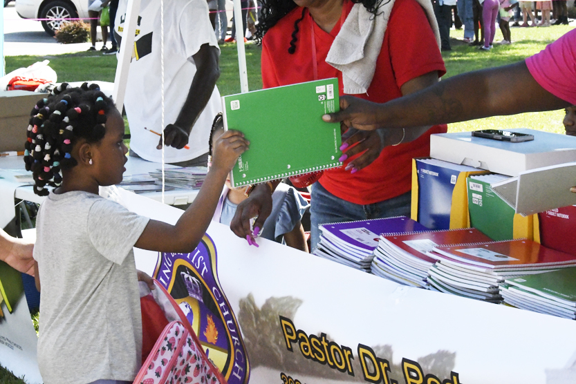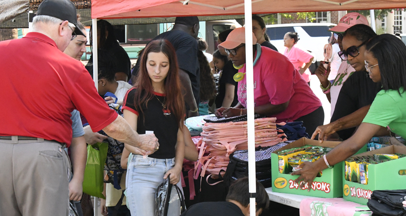 The Main Street Back To School Bash was held at the Dillon County Courthouse this morning. Students were able to pick up all types of school supplies and information. A Back-To-School Prayer service was also held. It was a great event for the community.