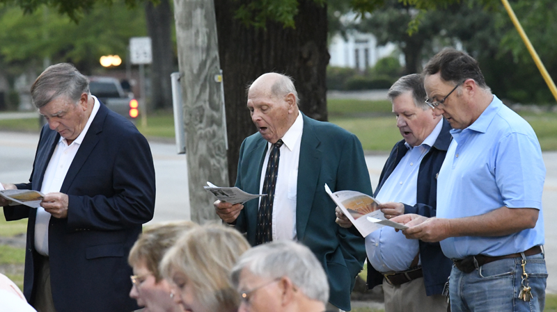 The choir, led by Robin Thompson, sang “Because He Lives”.