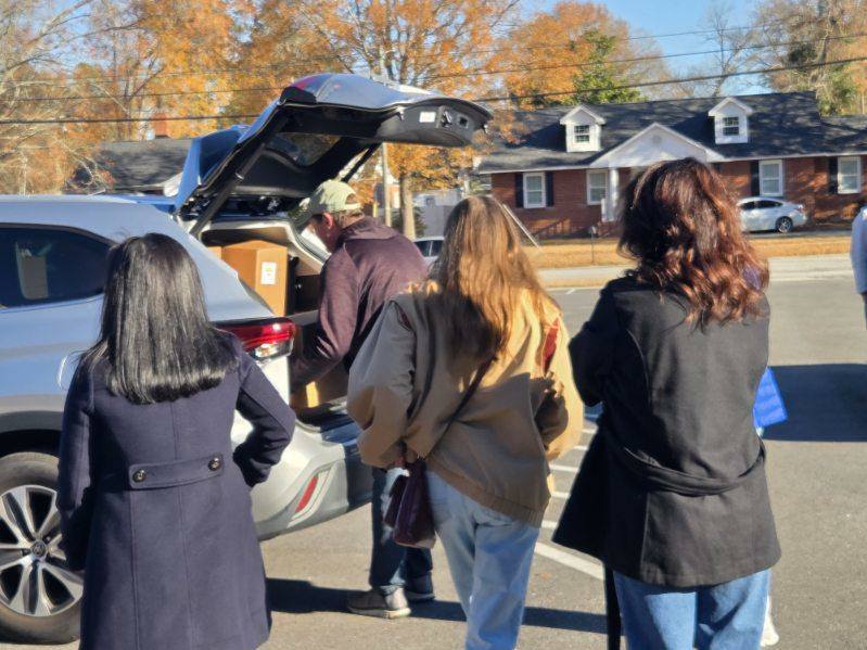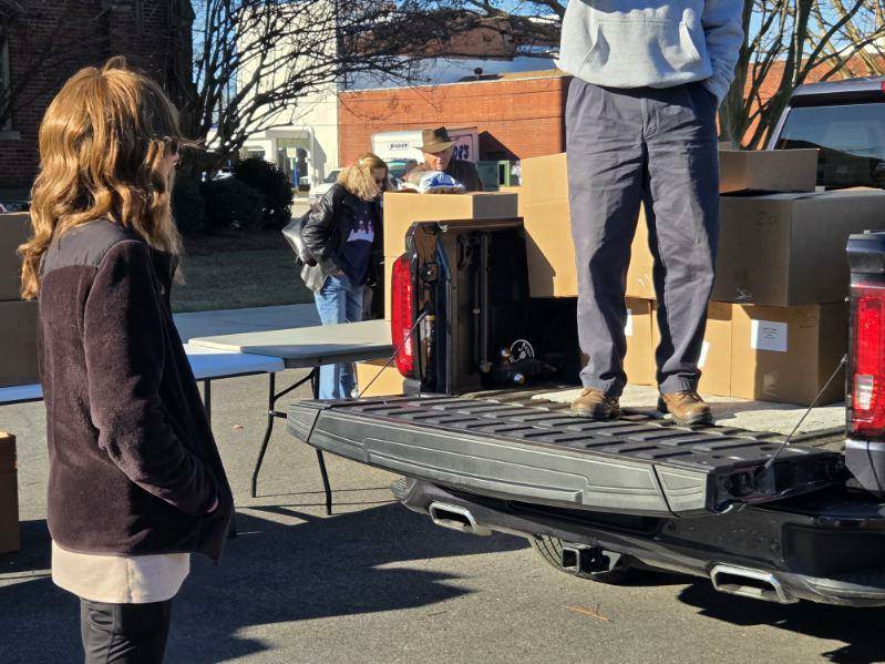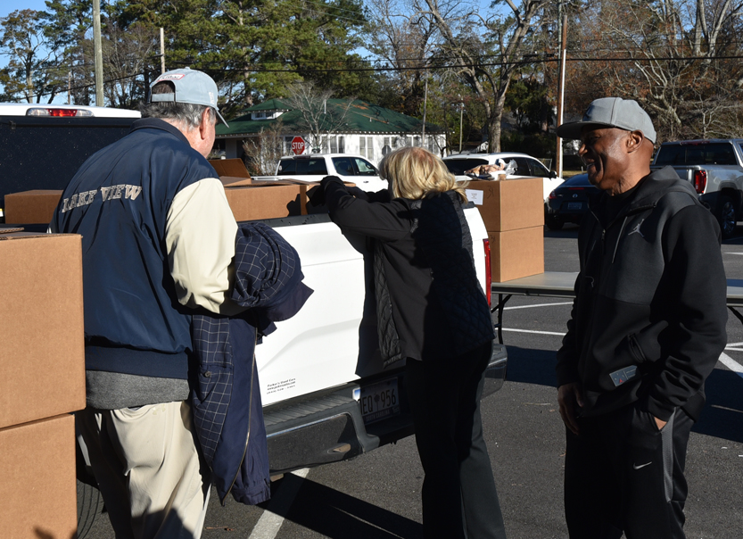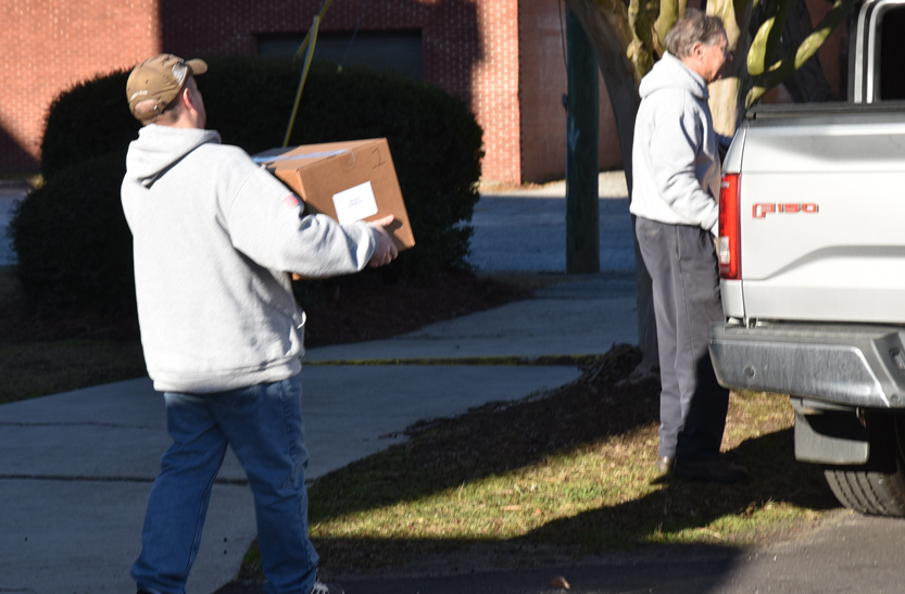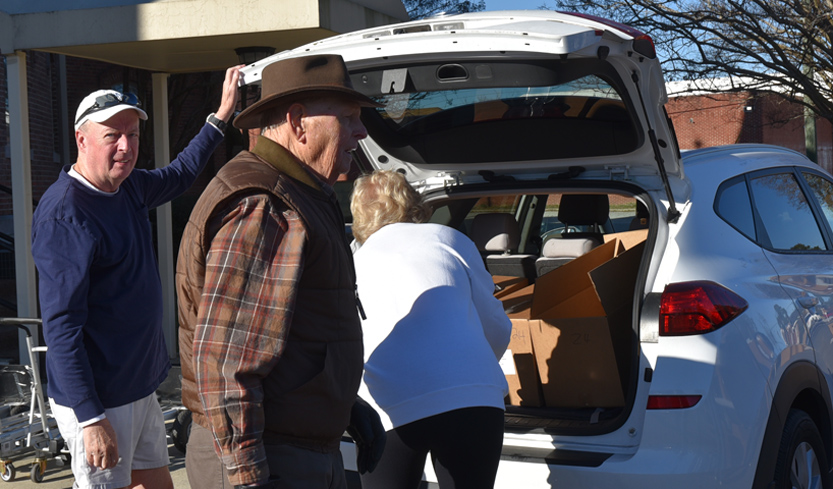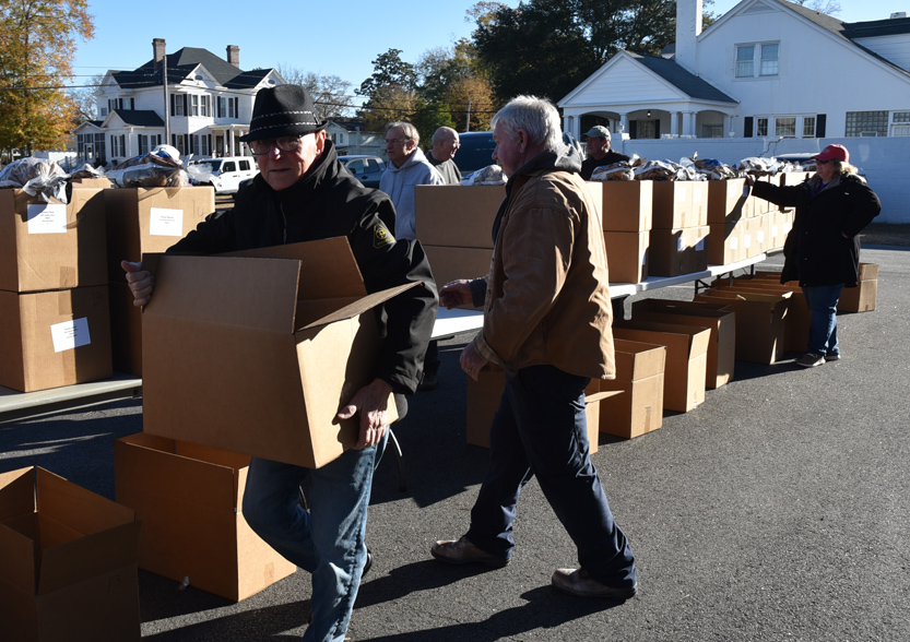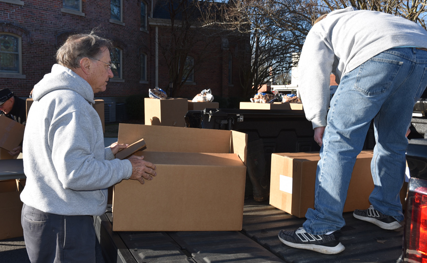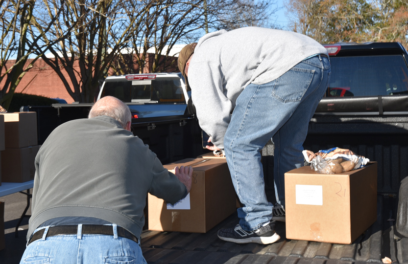 The Main Street Methodist Men and the community braved the windy, cold weather to deliver food to 75 families on Saturday, December 20. This is one of the projects of the Main Street Methodist Men. Usually the entire church participates in this worthy cause. Volunteers delivered these items to the families.