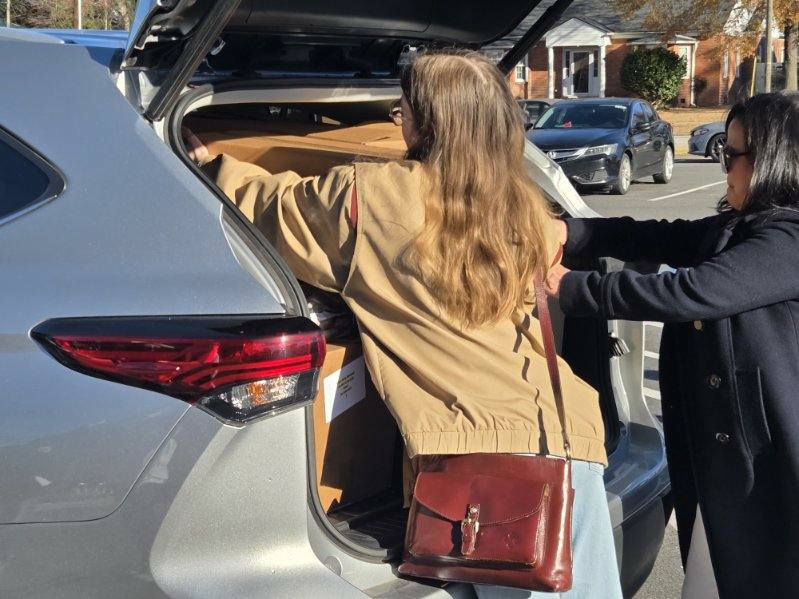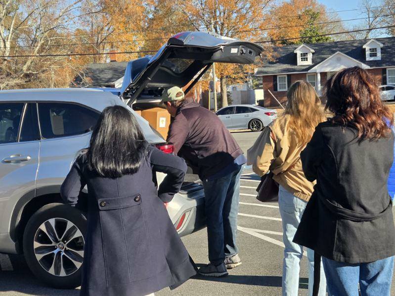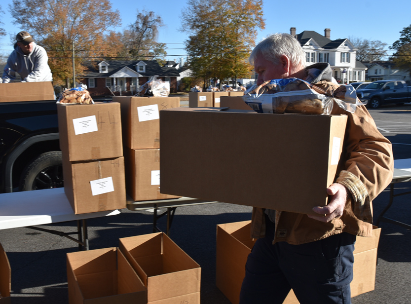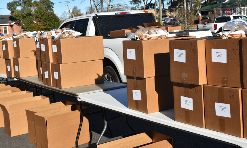 Today, the families served were given a turkey, a ham, 2 chickens, 1-pound of bacon, potatoes, canned items, flour, sugar, pasta, sauces, and much more. Each family received over $200.00 of groceries.