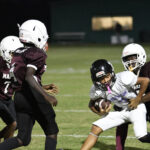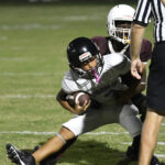 With 7:35 remaining in the second quarter, Marion’s #5 scored a 25-yard touchdown after the reception. The 2-point conversion failed. Marion was up 20-0.
