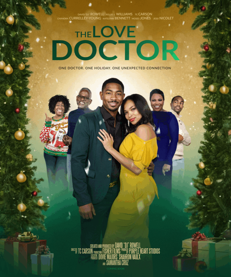 The movie was filmed in Columbia, South Carolina, and features a star-studded cast including TC Carson, who portrayed Kyle Barker on Living Single and is known for his voice work in a number of other films God of War, Star Wars, The Clone Wars, and Tyler Perry’s She’s the People. Others starring in the film are Kellie S. Williams (Family Matters) and Chandra Currelley-Young (Diary of a Mad Black Woman), and of course, DJ Rowell himself as The Love Doctor.