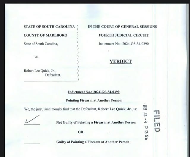 Marlboro County Jury Finds Man Not Guilty of Pointing and Presenting a Firearm