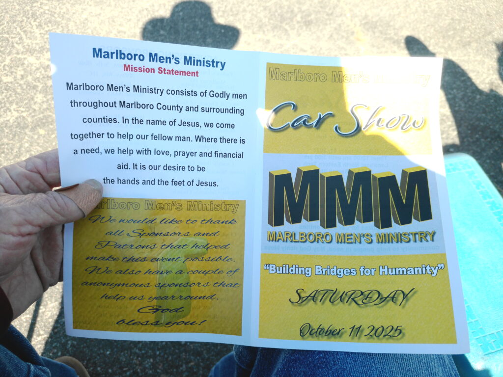 The Marlboro Men’s Ministry held a car show on Saturday, October 11th in Bennettsville. There was a gospel singing, food vendors, arts and crafts, and more. All proceeds go back intot he community to help people in need. The Marlboro Men’s Ministry consists of Godly men through Marlboro County and surrounding counties. In the name of Jesus, they coome together to help their fellow man. Where there is a need, they help with love, prayer, and financial aid. It is their desire to be the hands and feet of Jesus.
