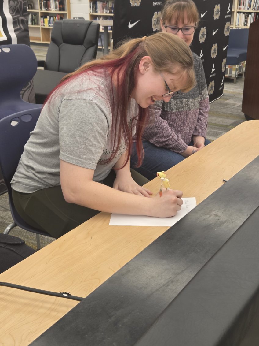 Although Marlboro County High’s Mary Williams had other offers, she signed with the University of Mount Olive where she will major in nursing, on Thursday, March 19, at the Marlboro County High School Media Center, to continue her education and her love of wrestling.