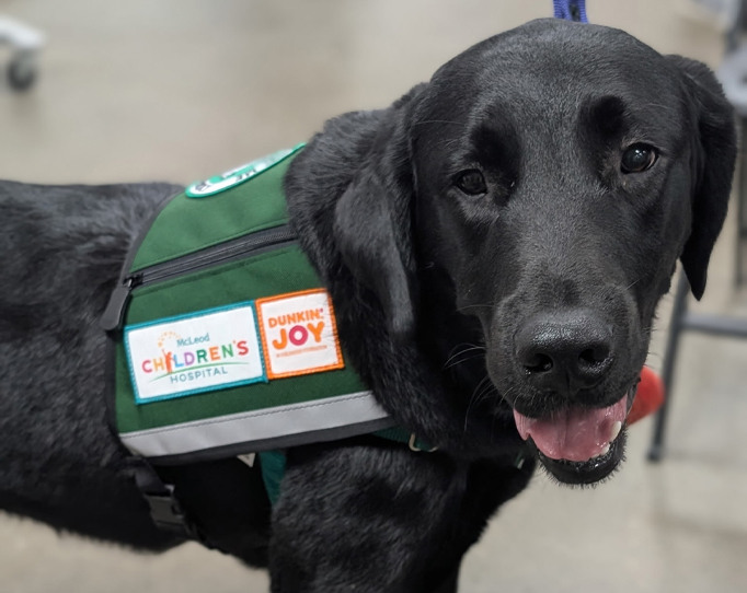The McLeod facility dog program was made possible through grants from the McLeod Foundation and Dunkin’ Dogs for Joy™.