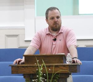 Choir Director Gene Tanner, accompanied by Miss Linda McKenzie on the piano, led the congregation in an invitation song, “Without Him”.