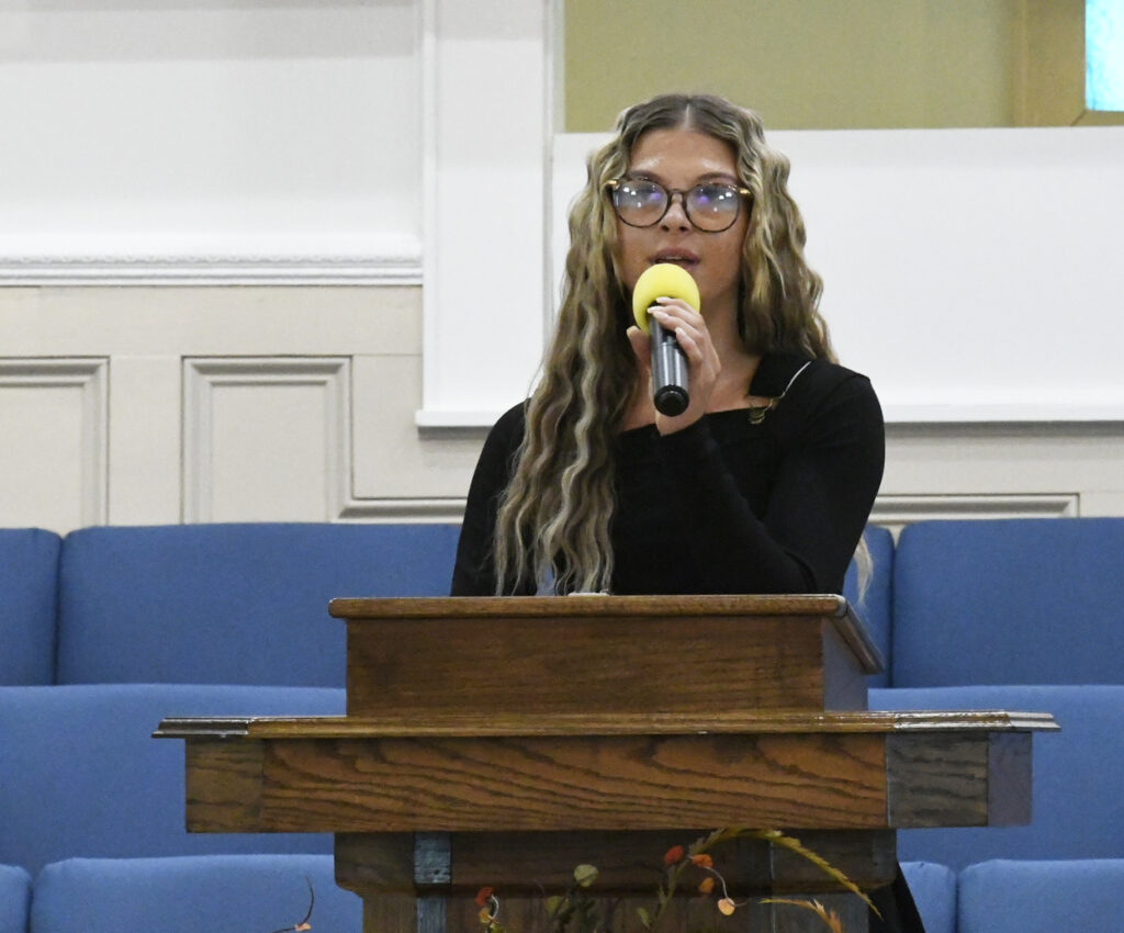 A “Shoutin’ Time in Heaven led by the Mount Calvary Praise Team. Berry sang the solo part of a song accompanied by the Youth Choir. Makenna Meekins sang a solo, “King of Kings.”