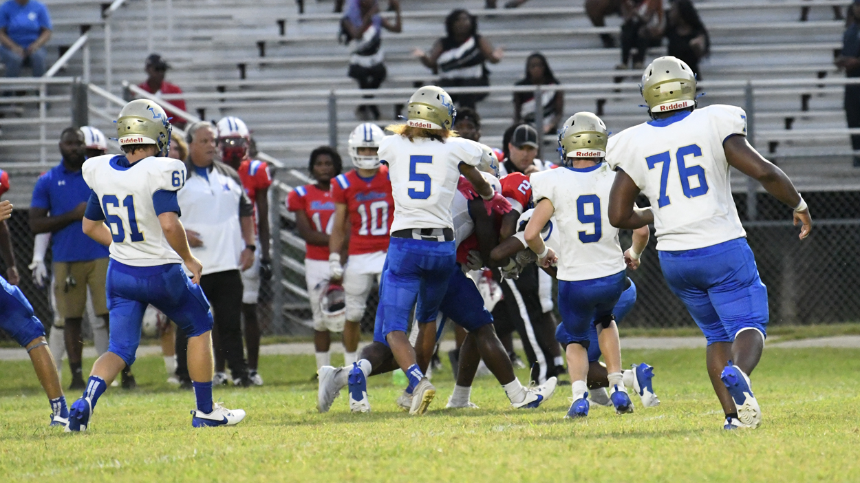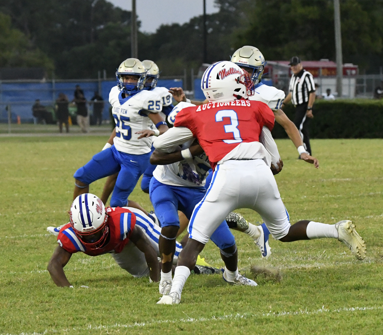 Mullins’ quarterback, Kanazzion Bethea, threw 2 touchdown passes and the Auctioneer defense helped the team come back from a 14-point halftime deficit to defeat Lake View.
