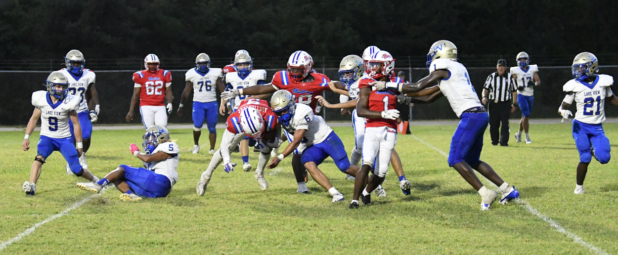 In a defensive battle in the first few minutes of the first quarter, the Auctioneers turned the pigskin over to the Wild Gators on downs on Lake View’s 39-yard line.