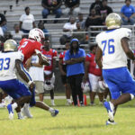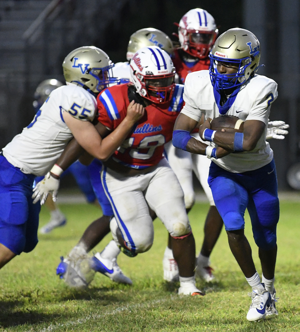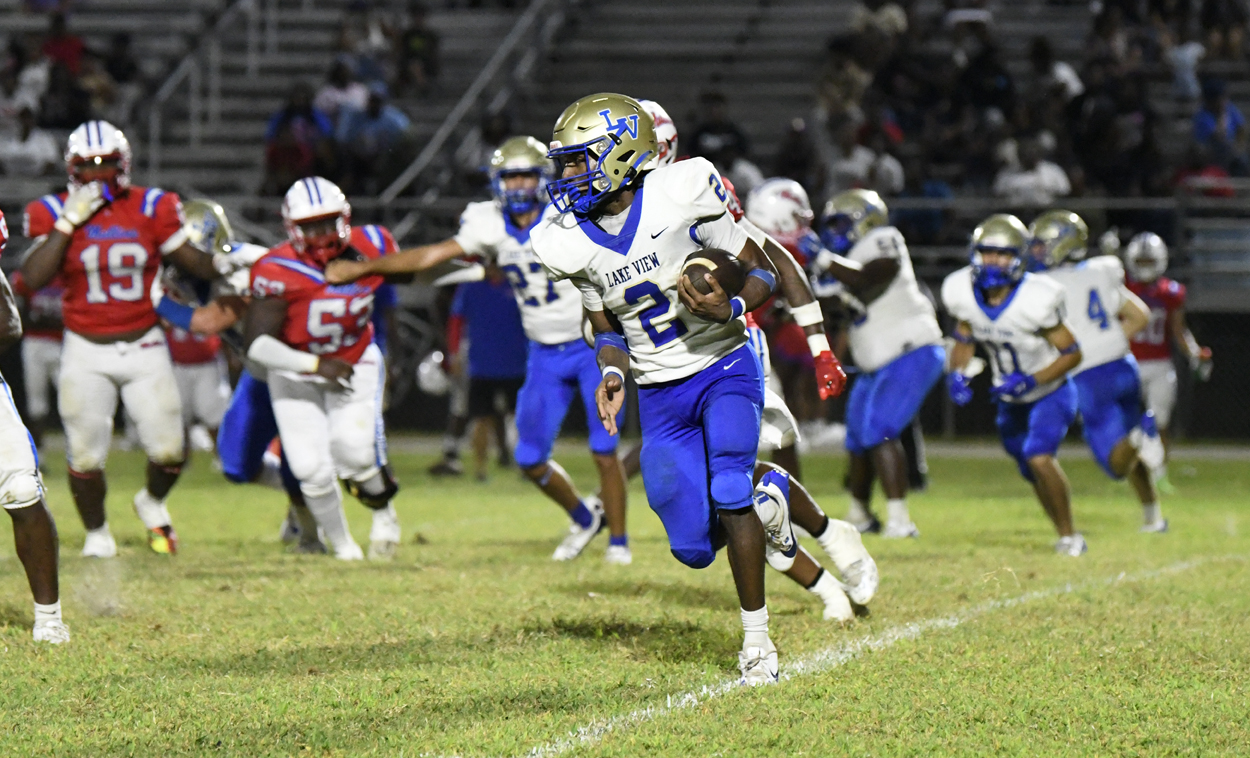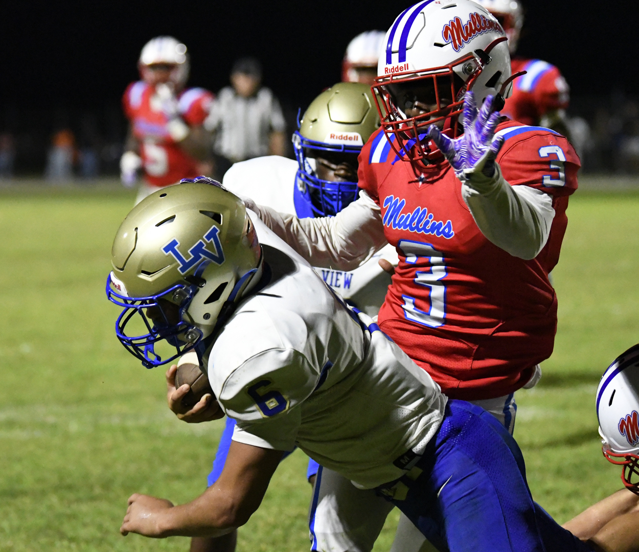 Mullins’ Zayan Grant scored from 17 yards. However, a flag on the play nullified the touchdown. Mullins’ Kanazzion Bethea carried and a flag against Lake View gave Mullins a first down on Lake View’s 11-yard line. On fourth and 3, Mullins’ Kanazzion Bethea fumbled, and Lake View recovered the fumble on their 10-yard line. On fourth and 1, Lake View was stopped and Mullins took over on Lake View’s 18-yard line.