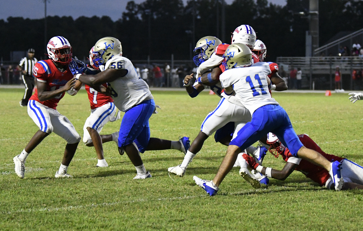The Mullins Auctioneers came from behind to edge the Lake View Wild Gators 22-21 in a varsity football game completed on Monday, September 2, in Mullins.