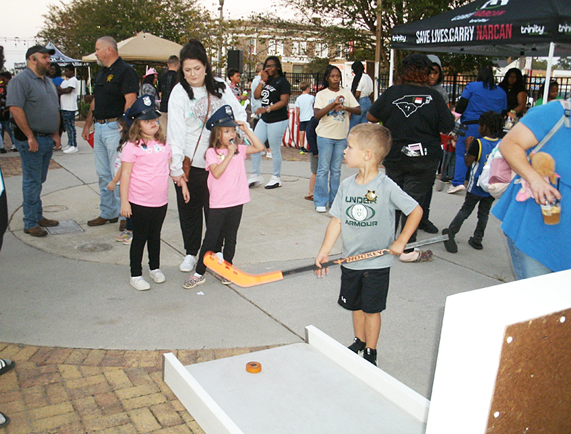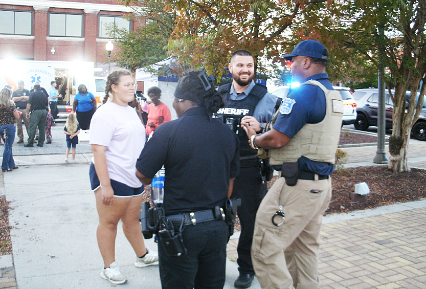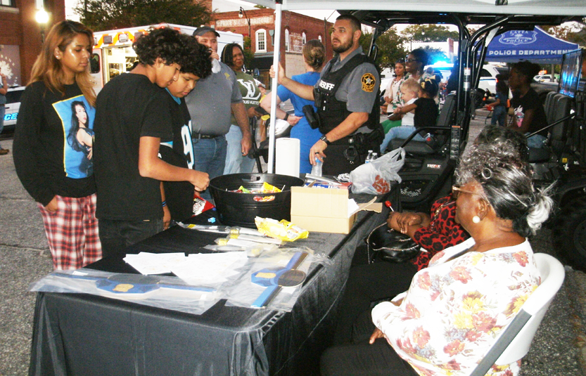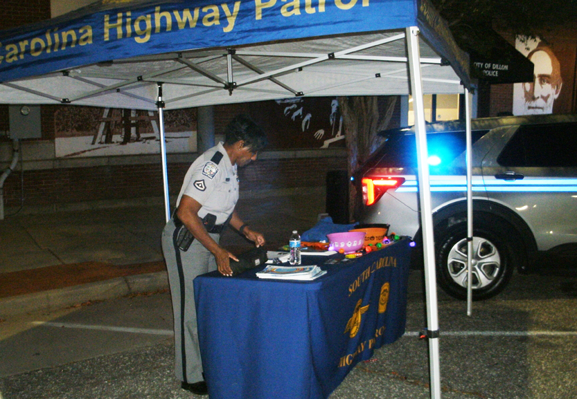 Several law enforcement agencies, local businesses, and organizations were part of the National Night Out event hosted by the City of Dillon Police Department and the Dillon County Sheriff’s Office on Tuesday night. The event took place in the fountain area in downtown Dillon. There were games, food, and information available. Approximately 500 hot dogs were served by the Main Street Methodist Men during the event. It was an outstanding event.