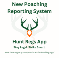 SCDNR encourages citizens to download the Hunt Regs App and help protect South Carolina’s natural resources. Working together, we can preserve our wildlife for future generations.