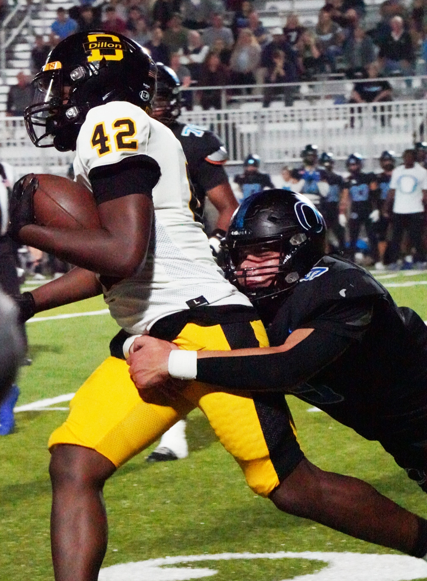 The Dillon Wildcats’ offense went to work and moved the football to Oceanside’s 22-yard line. Dillon turned the football over on downs, and Oceanside began on their own 13-yard line.