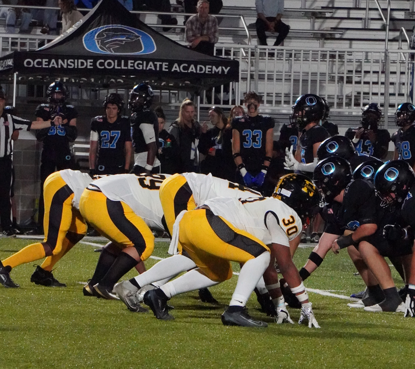 With 8 minutes remaining in the first quarter, Oceanside Collegiate Academy scored on a passing play for the first score of the game. The PAT was good.