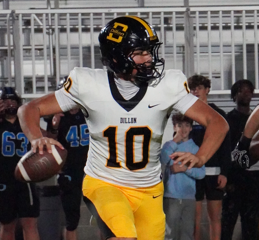 After the kickoff, Dillon had the football on their own 45-yard line. Dillon’s offense moved the football to Oceanside’s 28-yard line before an interception by the Landsharks turned into another score for them. The PAT was good. Dillon trailed by 28 points.