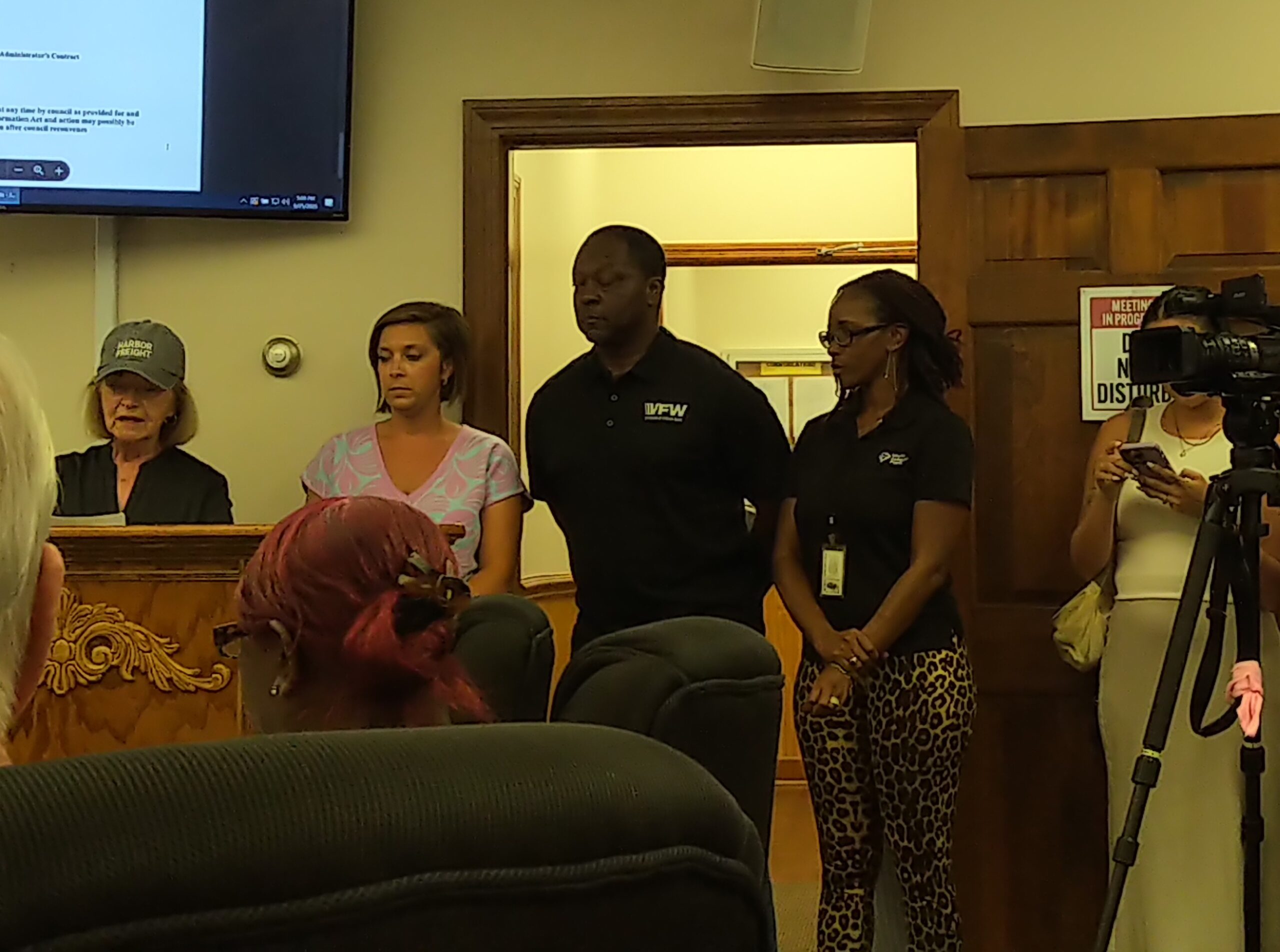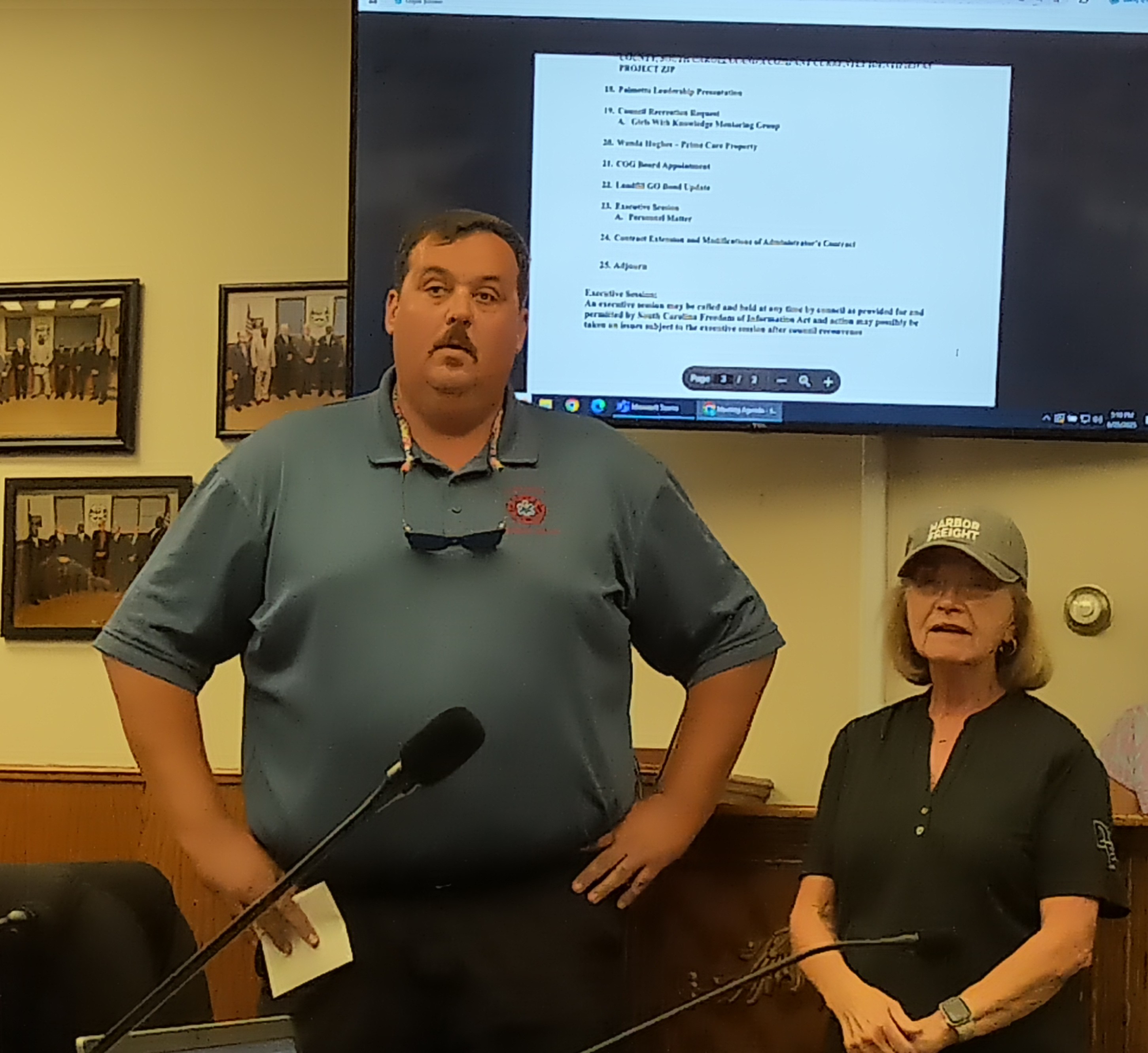 Palmetto Leadership donated nearly $8,700 from the proceeds of their lipsync challenge to Dillon County Emergency Services for their blood program. It was the largest fundraiser that any Palmetto Leadership class has ever had. Johnnie Luehrs and members of the class made the presentation at a past Dillon County Council meeting. Emergency Services Director Daniel Moody said the donation was greatly appreciated. (Photos by Betsy Finklea/The Dillon County News, LLC)