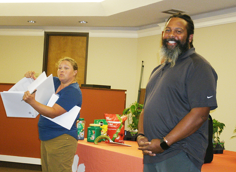 After Ketron’s presentation, Foxworth took over. He spoke about moving more and sitting less. He said working in the garden can help. He said people should consult with their healthcare provider to see what they should be doing and what their level of activity should be. He described the various levels. He said a low level is when you can garden and talk and sing at the same time. A moderate level is when you can garden, talk, but can’t sing. A vigorous level is when you can’t sing or talk. He suggested getting 150 minutes of physical activity a week.
