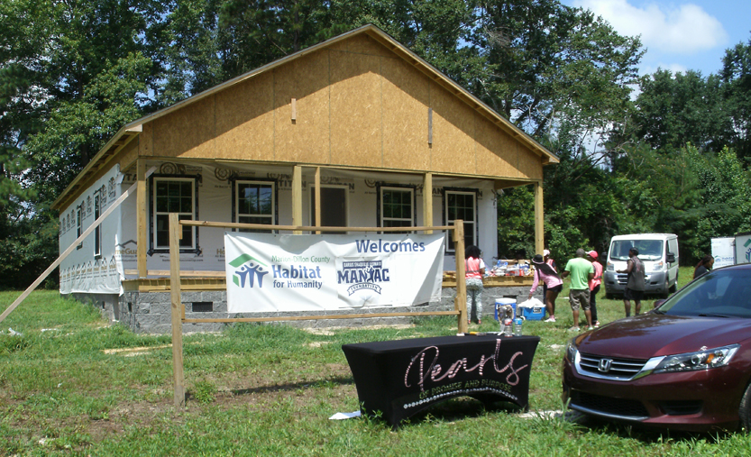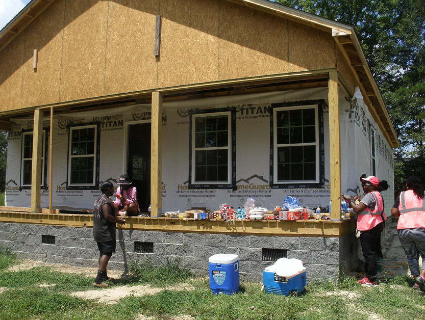 Progress continues to be made at Dillon County’s first Habitat For Humanity House located in Lake View. The Pearls of Promise and Purpose (POPP) were at the house today (Saturday, June 21) installing windows and doing other types of work. We will have more pictures and information on their work here later. Here they are on a brief lunch break before they got back to work hanging a door.