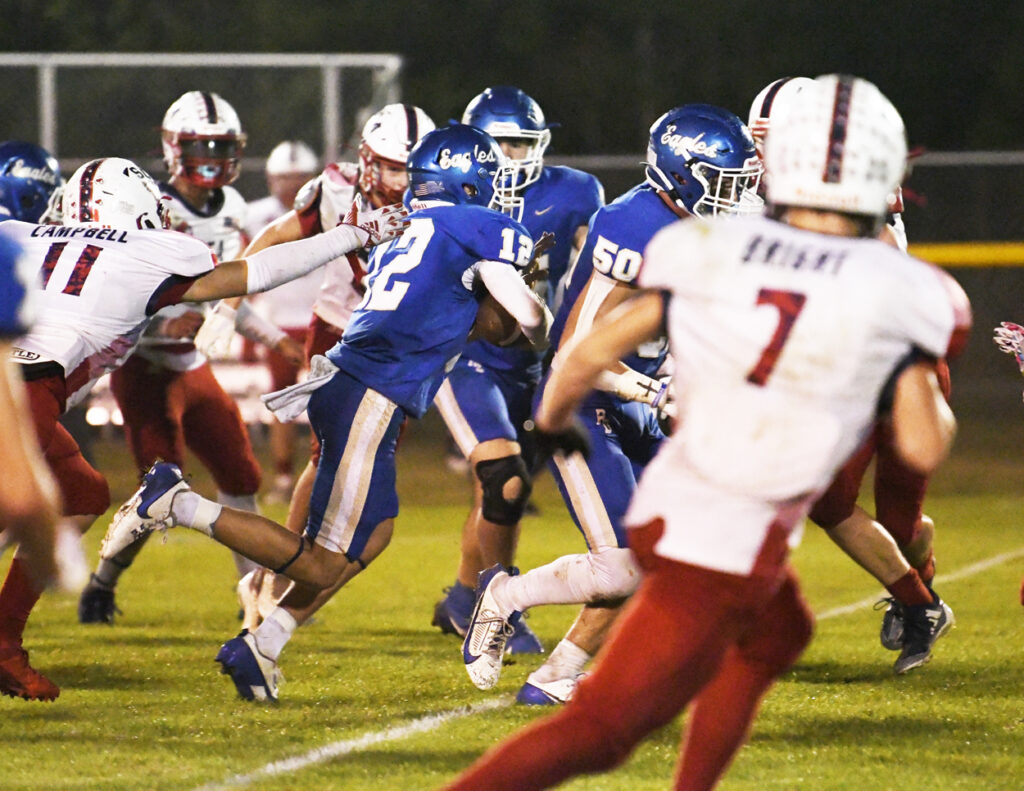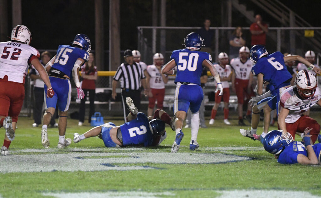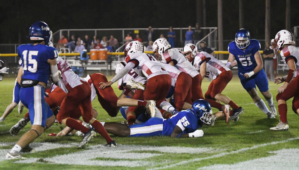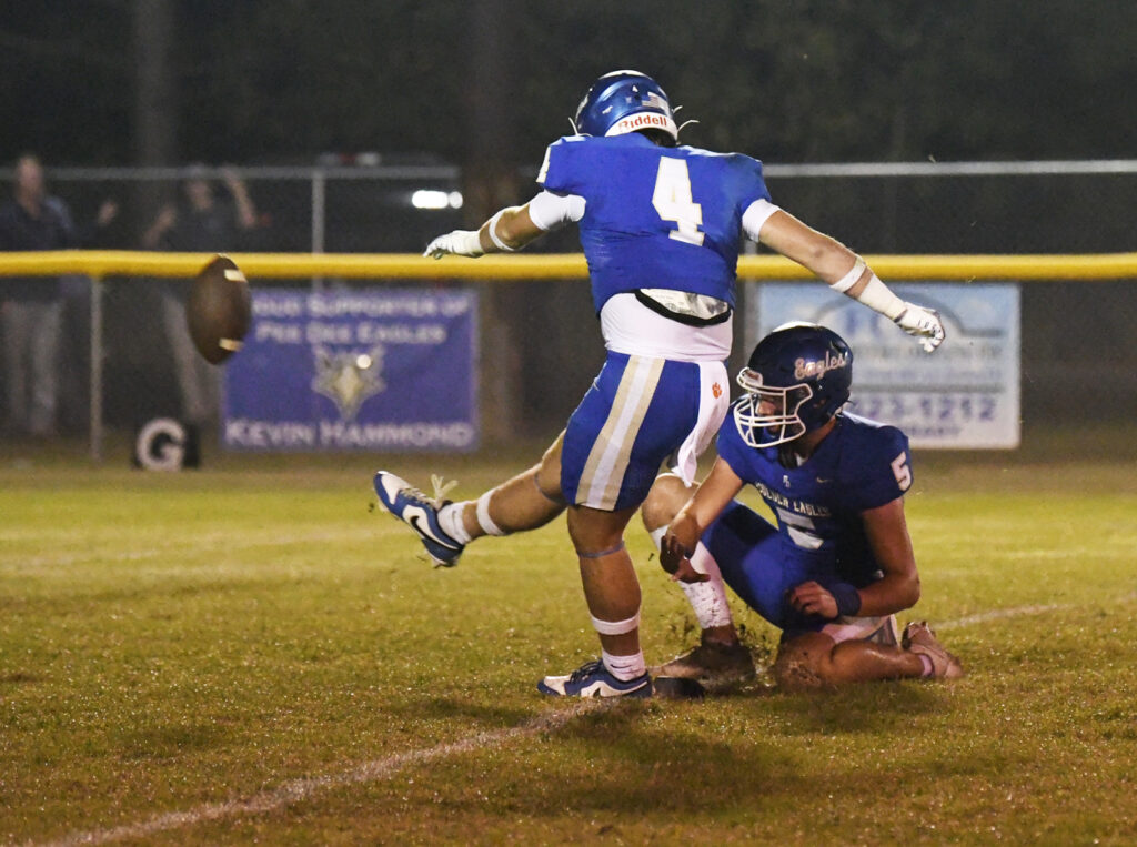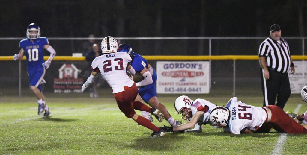With 10:39 remaining in the first half, Ryan Small scampered for a 29-yard touchdown. After a bad snap, Pee Dee Academy’s Noah Poston rushed for the 2-point conversion to give the Golden Eagles a 36-0 lead.