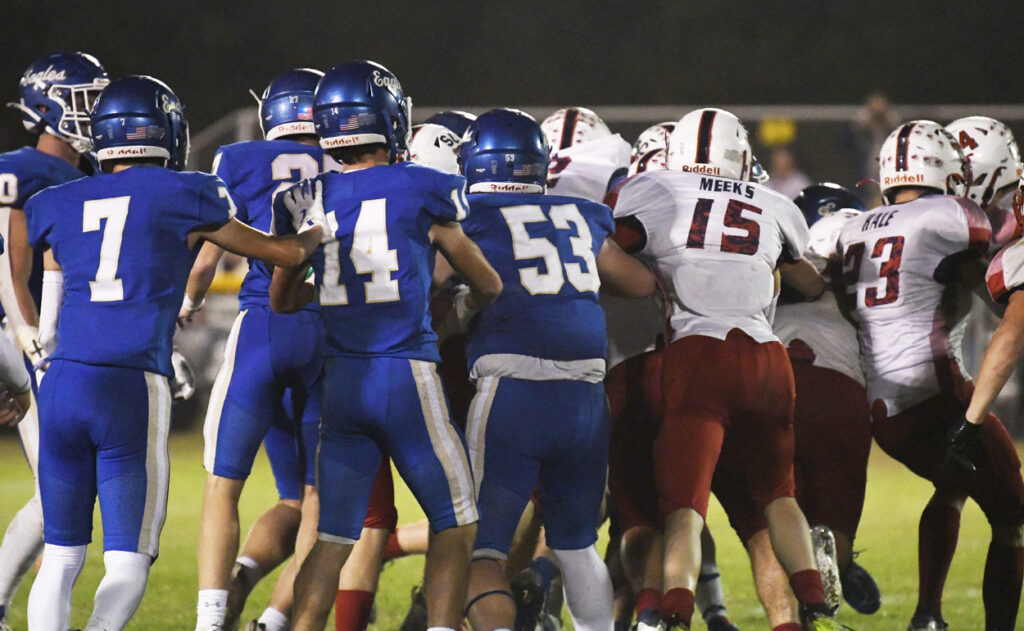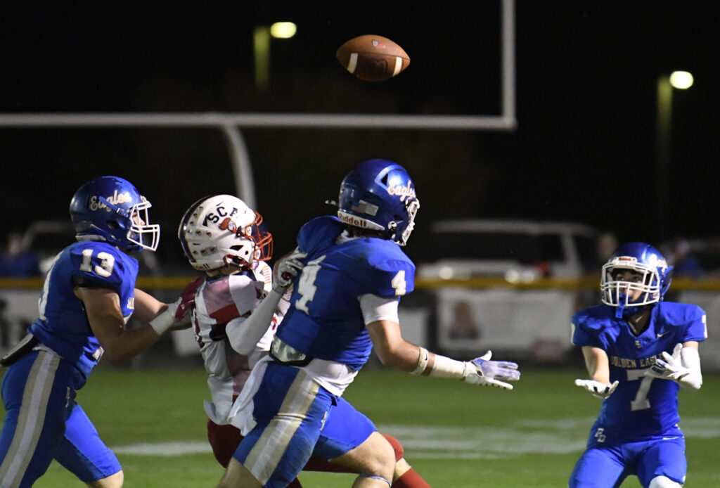 The Golden Eagles wasted little time in getting onto the scoreboard with pass from Colby Richardson to Miles Trussell for the first touchdown of the game with 10:14 remaining in the first quarter. Noah Poston connected for the PAT.