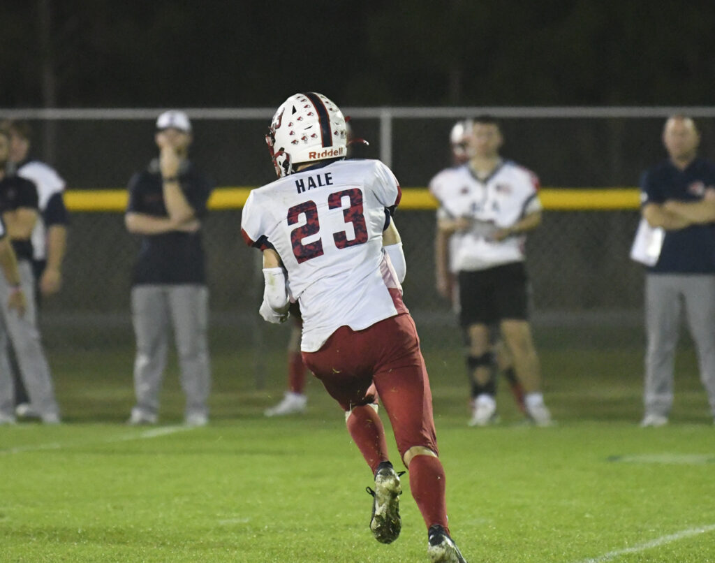 The Warriors started on offense from their own 20-yard line with Ethan Cloys carrying for 8 yards. However, the Warriors faced a fourth and 5 yards to go, and Ryan Hale punted to Colby Richardson who returned the football to Pee Dee’s 46-yard line.