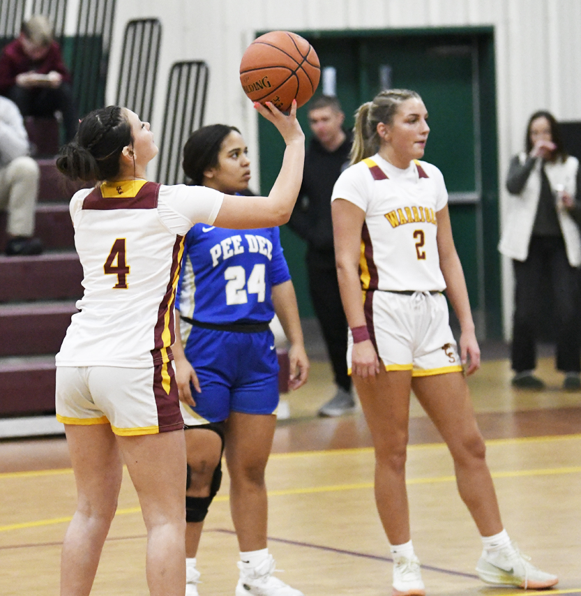 Bralen Carter quickly scored a 2-point basket to start the final quarter of play. Katie Estes hit a basket for 2 points for Pee Dee and followed that basket with another 2-point shot. Estes sank another basket for 2 points for the #3 basket in a row. DCS’s Chloe Powell connected for a free throw. The Golden Eagles’ Madison Baxley hit a 2-point basket. Alayna Locklear scored a 2-point basket for DCS. Pee Dee Academy’s Kyndal Larymore sank a free throw followed by Nylee Causey who sank 2 free throws. DCS’s Fraley Britt managed a 2-point basket for the final points of the game.