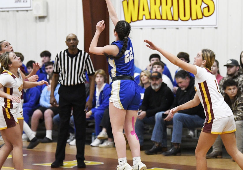 The Golden Eagles added a 2-point basket followed by a 2-point basket by Rebecca Hammond. Dillon Christian School’s Bralen Carter blocked a shot attempt by Rebecca Hammond. After a scramble for a loose ball, Caroline Elvington attempted a shot from the corner. The Lady Warriors’ Lily King laid one in for 2 points followed by a 2-point basket by the Lady Warriors to cut the lead to 11, 21-10. Fraley Britt sank a free throw followed by a 2-point basket by Dillon Christian School. The Golden Eagles’ Nylee Causey connected for 2 points. DCS scored a 2-point basket that was answered by Rebecca Hammond to close out the first half with Pee Dee on top 25-15.
