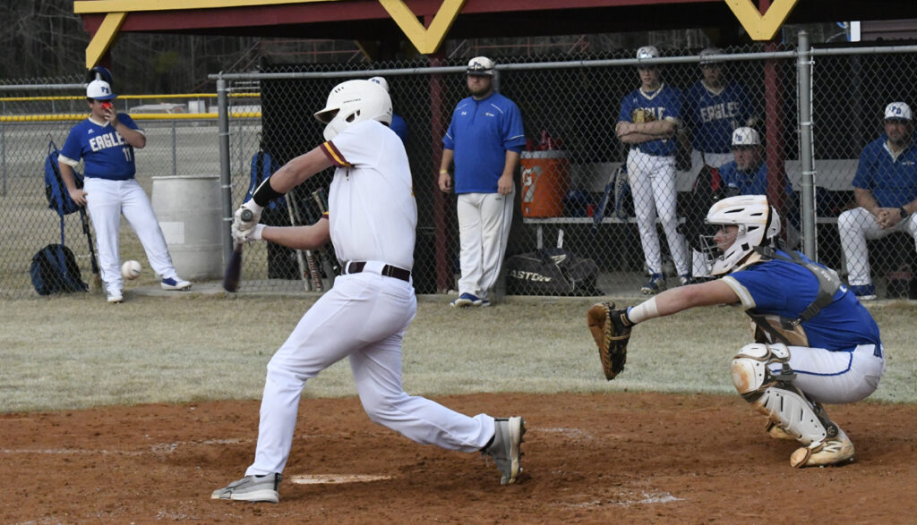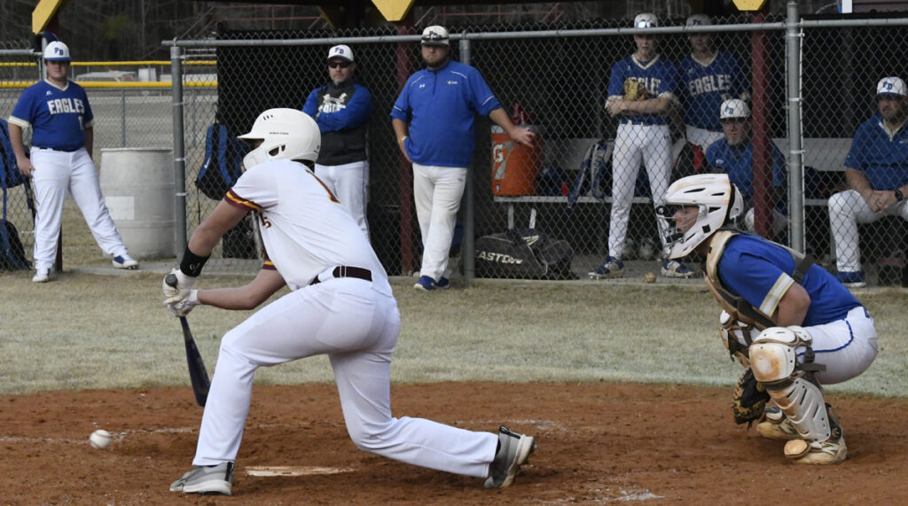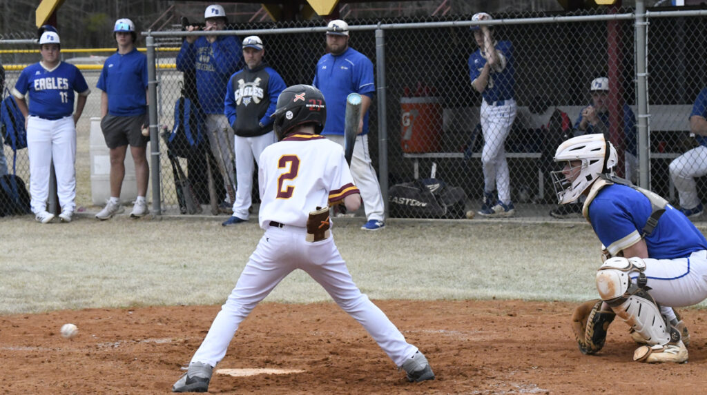 The visiting Pee Dee Academy Golden Eagles returned home to Mullins on Tuesday, March 4, with a 14-2 run-ruled shortened game.