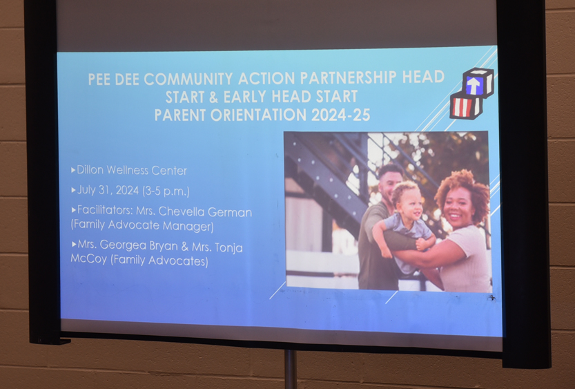 The Pee Dee Community Action Partnership Head Start and Early Head Start held their parent orientation at the City of Dillon Wellness Center. Chevella German, Family Advocate Manager for Whittaker and Hamer Canaan said they are all looking forward to a great school year. Important information was shared with the parents to help students, parents, staff, and teacher have a great experience this coming year. The mission, vision, and goals were shared and a typical school day was reviewed. Transportation and the need for bus drivers was discussed. Students will be using Creative Curriculum, and parents will be using the Ready Rosie Curriculum. Children ages 0-2 1/2 start school at 8 a.m. on August 6th and the 3-4 year olds start at 8 a.m. on August 7th.