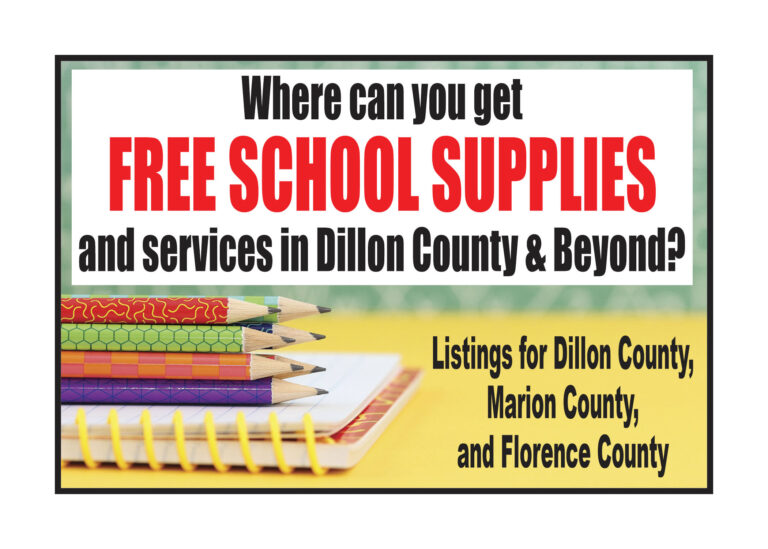 Several organizations, churches, and businesses are hosting free giveaways for local students to help them prepare for the upcoming school year. Here are some of the ones that we have been informed of in Dillon County and the surrounding area. Take advantage of these opportunities to get free school supplies and services for your child.