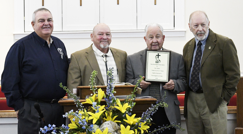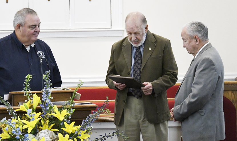 Dr. James Orr and Gerald Powell presented Rev. Ron Taylor with a plaque from the Pee Dee Baptist Association for 17 years of faithful service to the Kingdom of Christ.