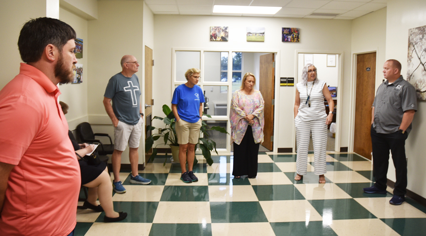 A Prayer Walk was held this morning at all three of the Latta Schools. It began at Latta Middle School. LMS Principal Carrie Ann Brigman said the Prayer Walk started last year. Pastors, deacons, and lay people were invited to come and pray over the school. She said the schools need prayer, and this walk is done strategically at a a time where there are no students and very few staff in the building. She asked the group who assembled to pray for the building, the staff, the students, and for a successful and safe school year. Superintendent Stephanie Ard opened it up with a prayer in the middle school office. The group then prayed through the middle school, the high school, and the elementary school.