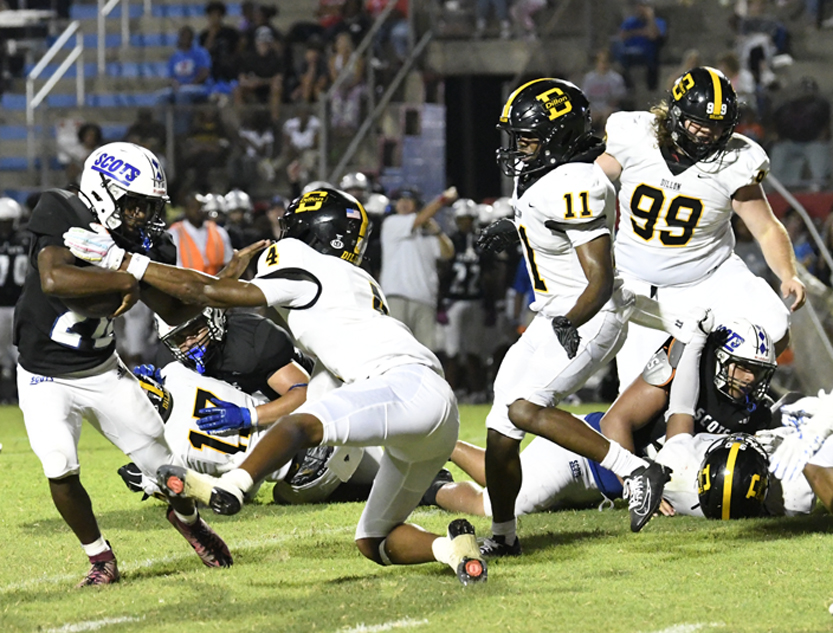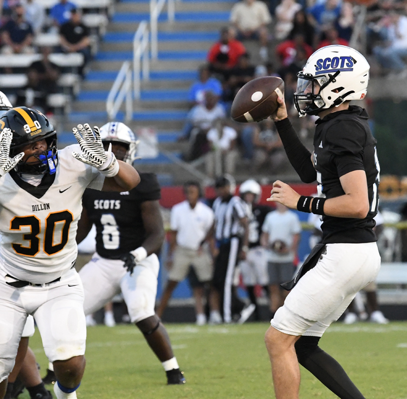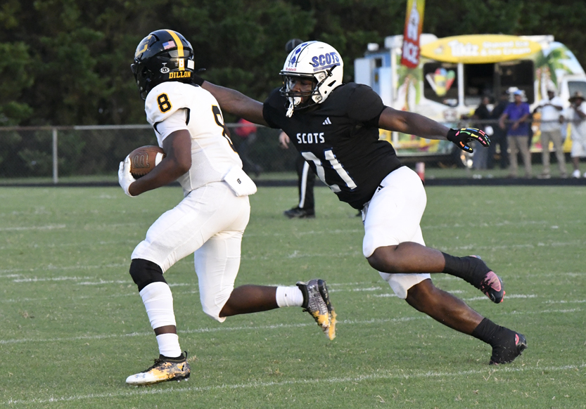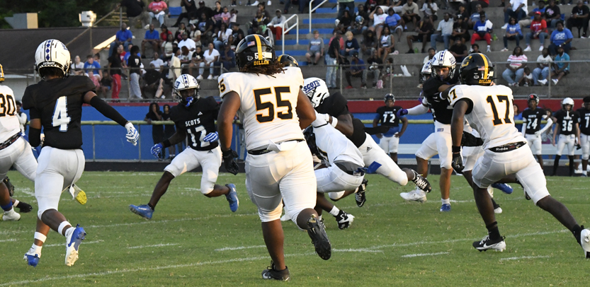 The Scotland County Fighting Scots edged the Dillon Wildcats 36-33 in varsity football action played in Laurinburg on Friday, August 22.