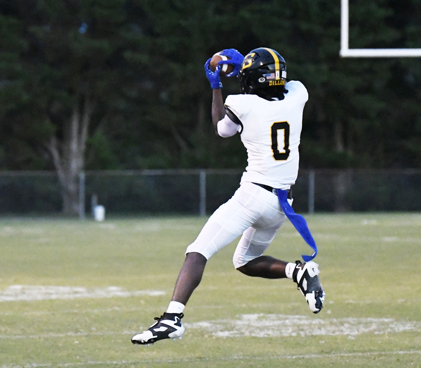 Scotland County’s #12, Samier Pate, returned the kickoff. A holding penalty against Scotland County placed the football on the 29-yard line for the Fighting Scots. After a 1-yard gain by #20, there was a holding call on the next play against Scotland County. The Fighting Scots faced a fourth down and 23. The punt by #7 placed the football on Scotland County’s 48-yard line to give the Wildcats good field position. Dillon’s #10 fired a completed pass to Zay Robertson who scored with 6:14 remaining in the first half. The PAT was good by #84. Dillon led 27-14.
