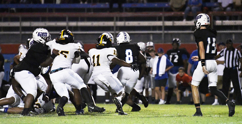 Dillon faced a fourth down and 7 yards to go and turned the football over on downs on Scotland County’s 42-yard line.