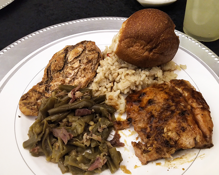 After the greetings, the guests enjoyed a delicious dinner with both grilled chicken and salmon, salad, rice pilaf, green beans, and dessert.