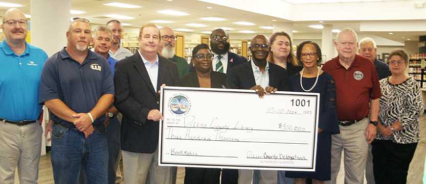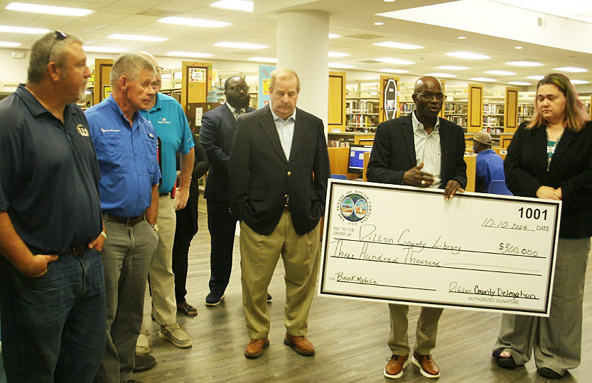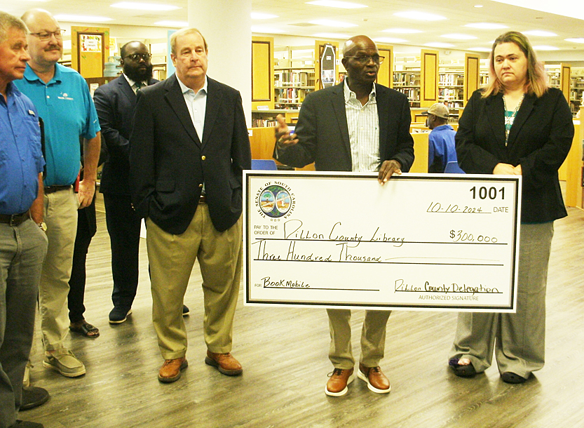 Senator Kent Williams and Rep. Jackie Hayes presented the Dillon County Library with a $300,000 check for thei bookmobile. Senator Williams emphasized the important role that the bookmobile provides in getting information, internet access, and books to children in rural areas.