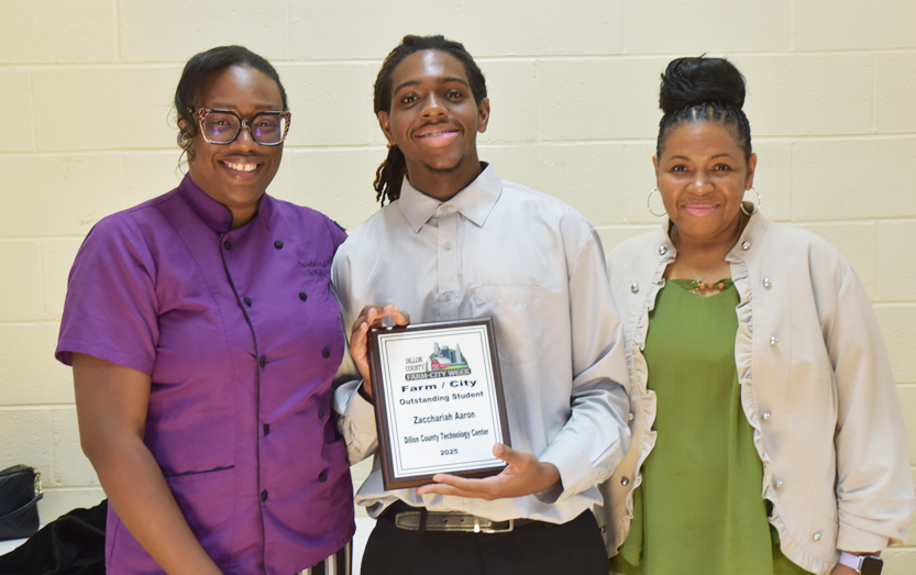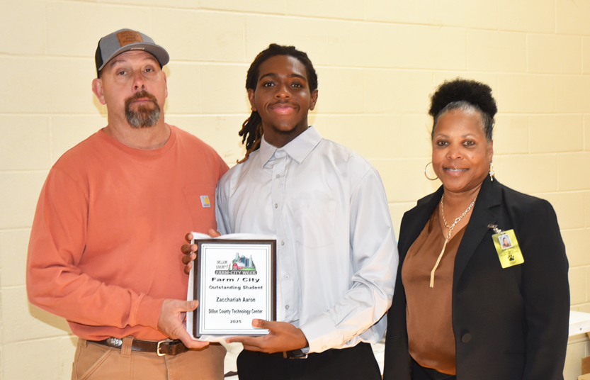 The Farm-City Week Outstanding Student for the Dillon County Technology Center is Zacchariah Aaron. He is the son of Rashawn and Kimberly Aaron and is currently a senior at Dillon High School and Dillon County Technology Center where he is enrolled in the Culinary Arts Program. He is part of the Academic Challenge Team, the National Honor Society, and participates in Track and Field. Additionally, he has excelled in the Culinary Arts Program, earning OSHA, ServSafe Food Handler, and ServSafe Manager certifications. Zacchariah has applied to several colleges and has been accepted with a full scholarship to Tuskegee University in Tuskegee, Alabama. His aspiration is to become an Aerospace engineer. Zacchariah is a well-rounded young man who enjoys cooking, reading, weightlifting, and, most importantly, attending Mt. Oliver Baptist Church.