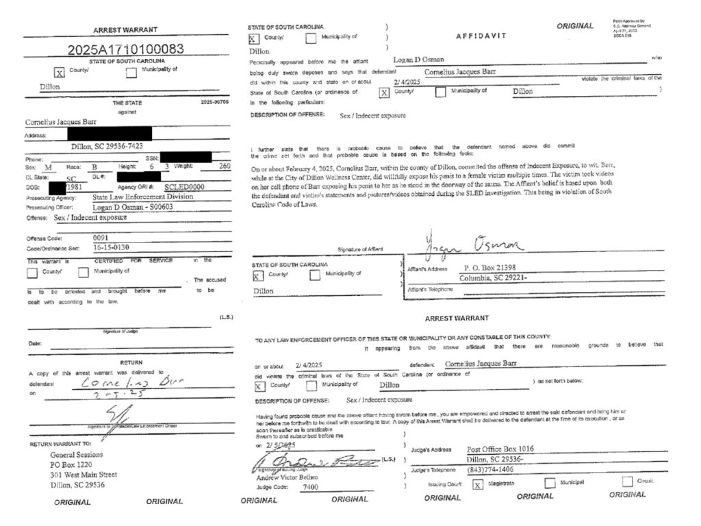 Barr was booked into the Dillon County Detention Center.