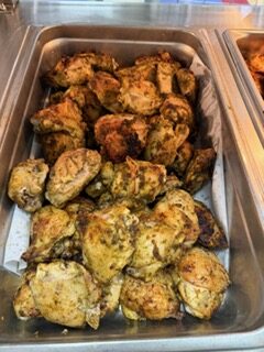 Menu highlights: Chermoula Chicken over white rice or Ham Chef Salad, steamed