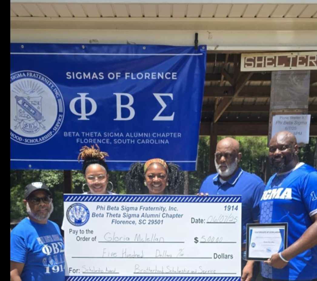 • The Florence Chapter of Phi Beta Sigma Fraternity Inc. Scholarship Awards Scholarship To Gloria McLellan