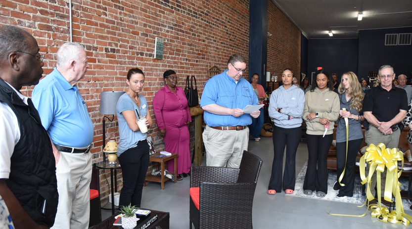 Rev. Ron Taylor, head of the Pee Dee Baptist Association, spoke about this Christian-oriented coffee shop already had two Bible study groups who meet there. Taylor said all are welcome. He offered a prayer that this place “would help light people’s way.” Then the ribbon cutting was held.