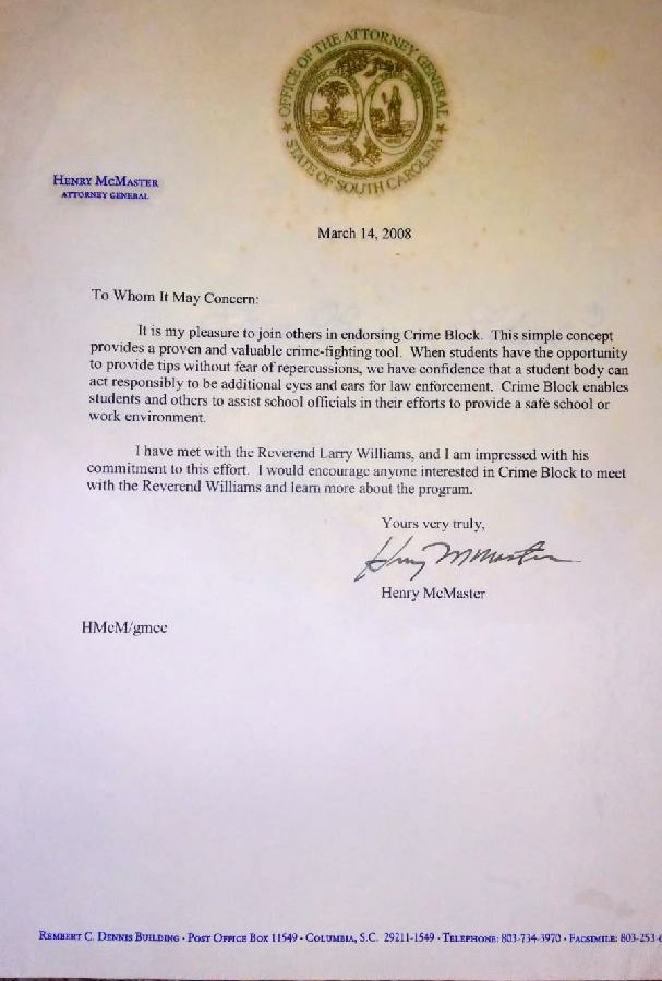 Crime Block President, Rev. Larry Williams, Sends Message to the Citizens of the Town of Latta